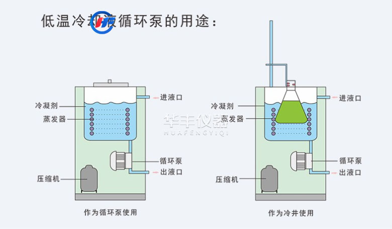 3、循環(huán)泵可將槽(機(jī))內(nèi)冷卻液輸出,冷卻或恒溫機(jī)外實(shí)驗(yàn)容器或建立恒溫場(chǎng)。